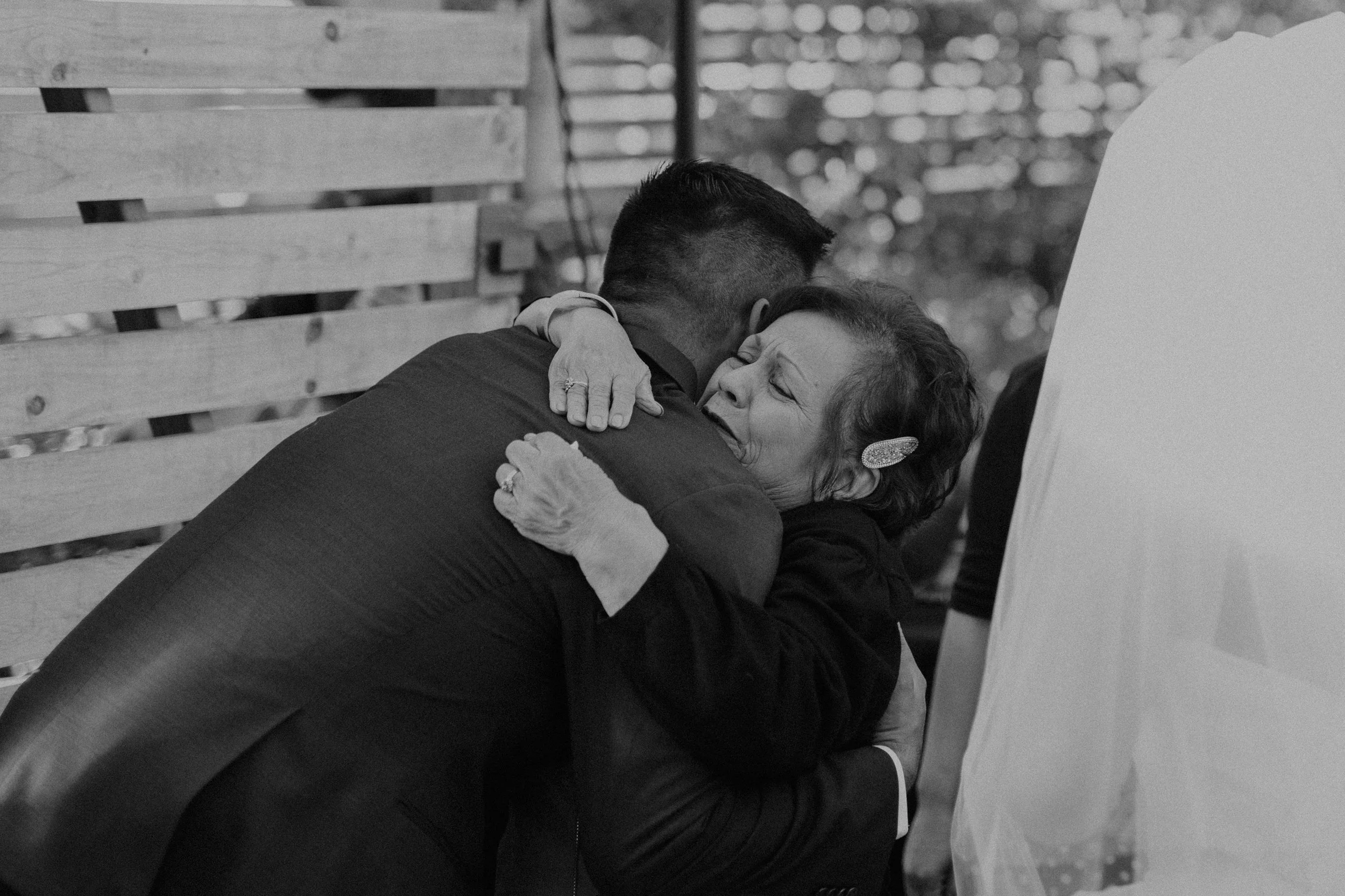 Grandma hugging the groom