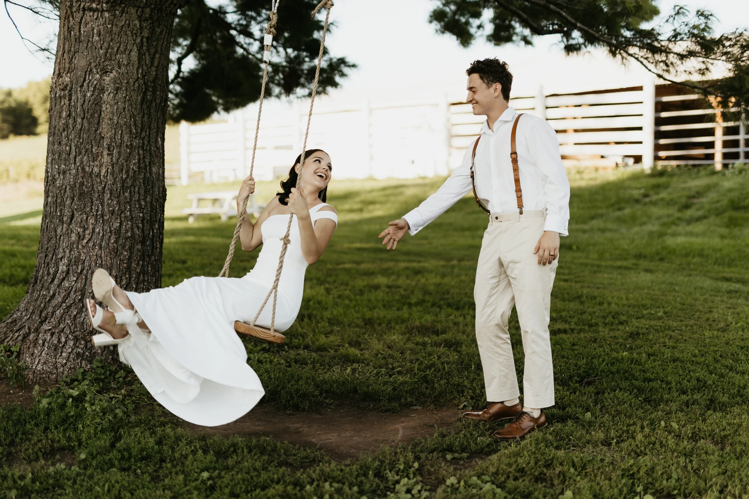 Groom Pushing Bride on a Swing