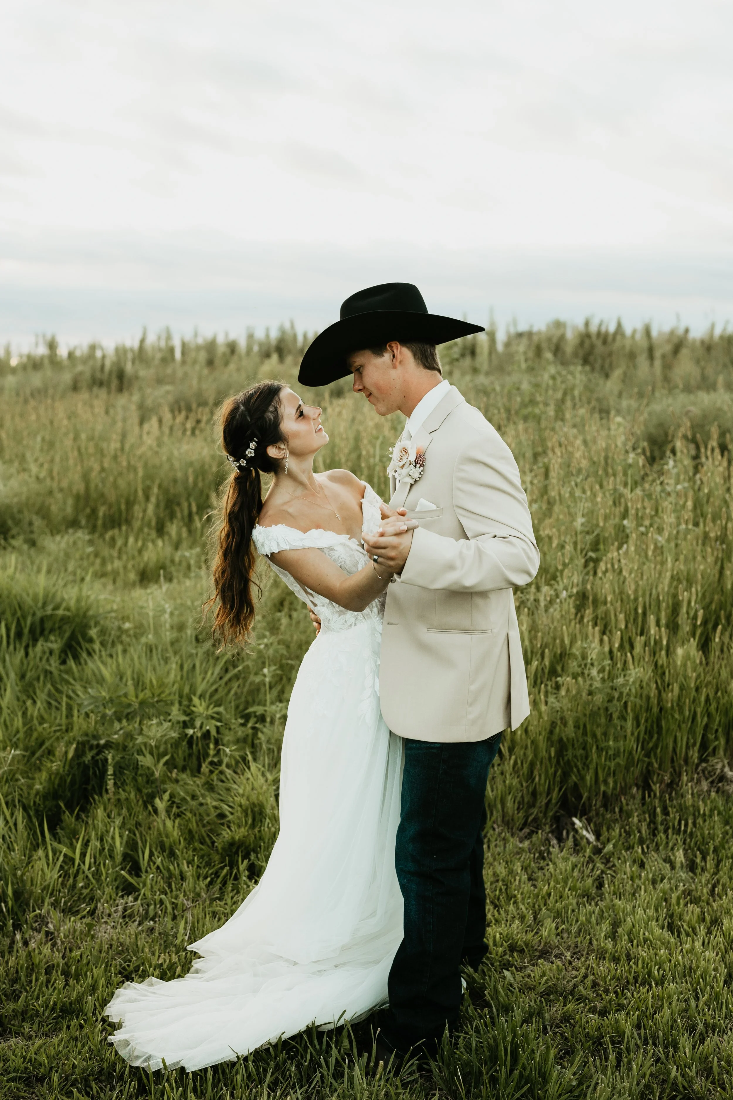 Married Couple Standing in Tall Grass