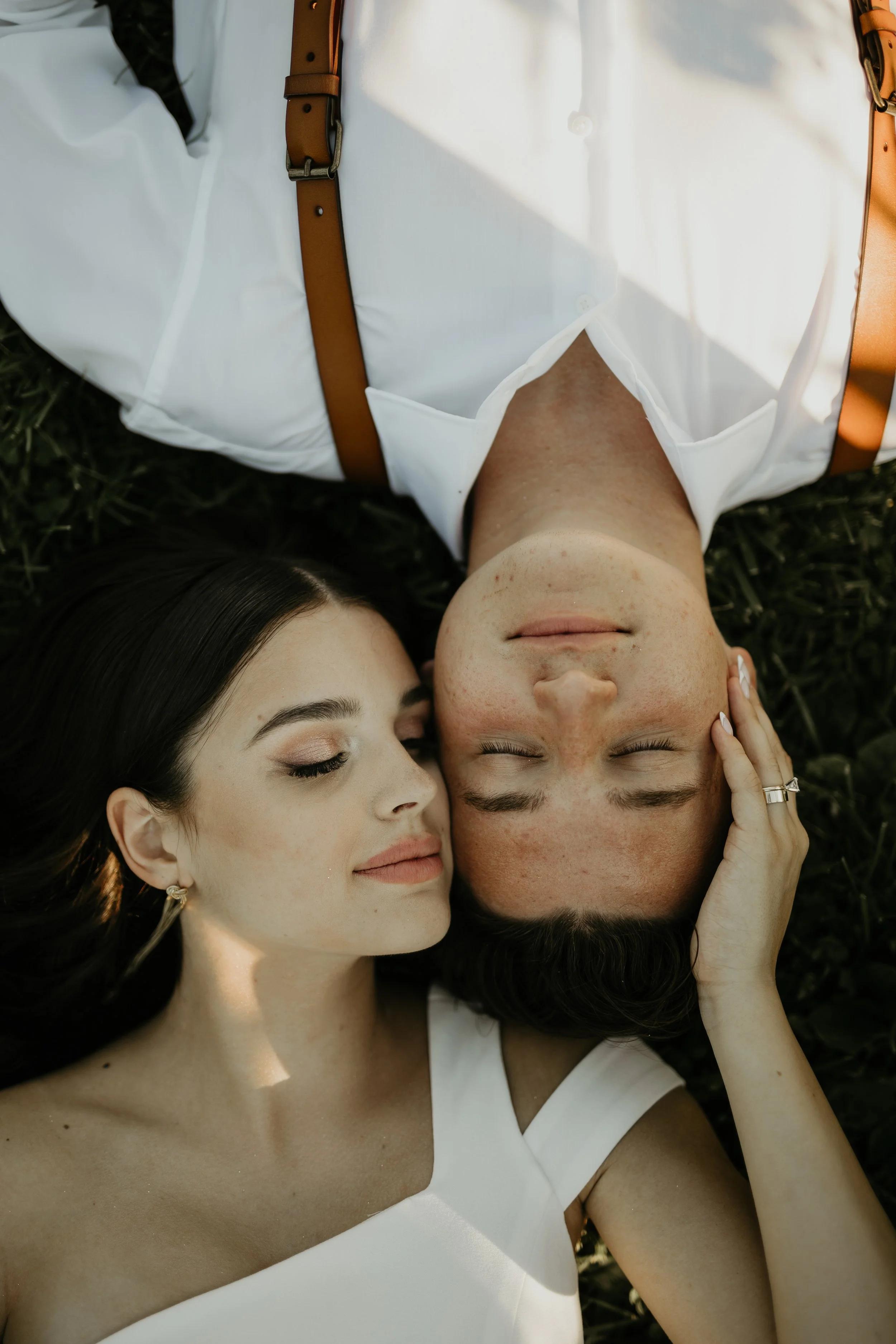 Couple Laying on the Ground with Their Faces Next to Each Other