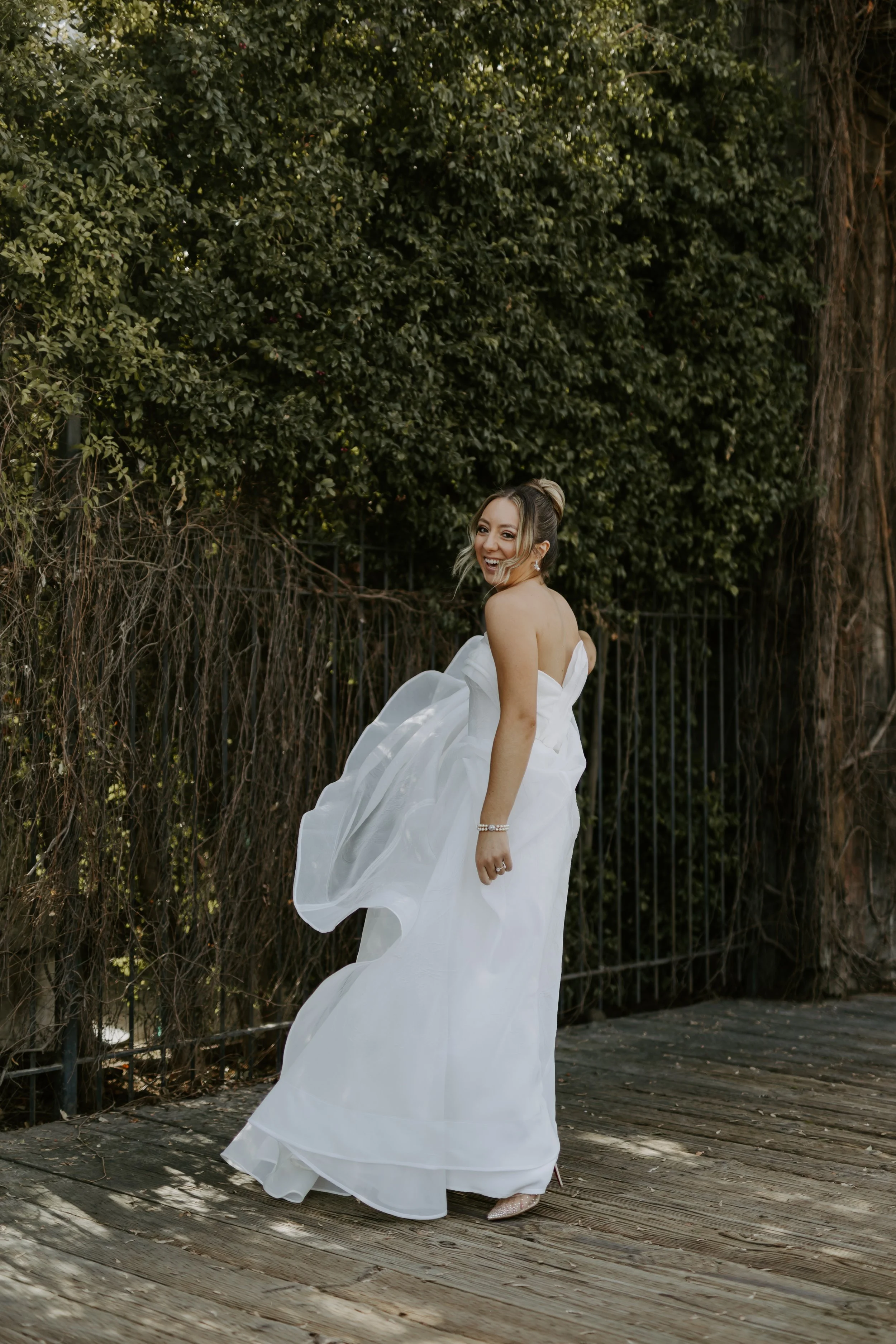 Bride twirling in her dress